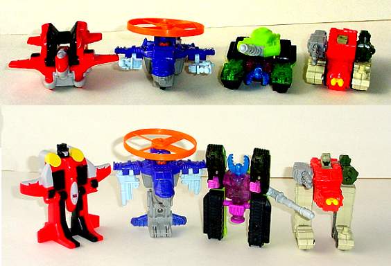 The Transformers "Armada" set of toy premiums consisted of four Autobots and four Decepticons: Starscreen, Cyclonus, Megatron and Demolisher. The four transformers build into one giant fighting vehicle.