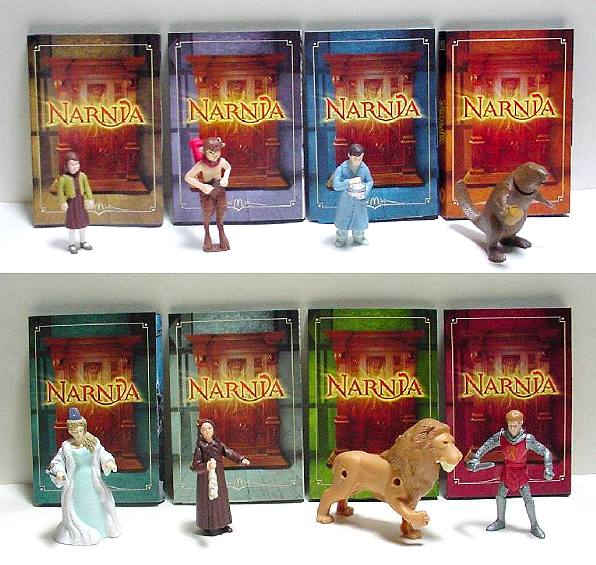 this set of toy premiums consists of eight toys which stand approximately 8cms tall, each toy having its own piece of scenery from the movie: Lucy and the Wardrobe, Mr.Tumnus and his Home, Edmund and the White Witch,