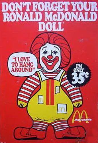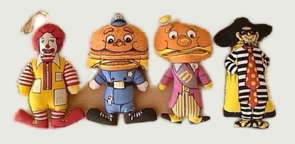 1980's Stuffed Characters Ronald, Officer Big Mac, Mayor McCheese, Hamburglar. |