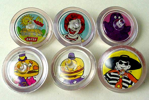 Character Suction Caps. Ronald, Grimace, Mayor McCheese, Big Mac, Hamburglar. |