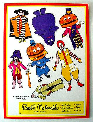 1982 Ronald & Friends Character Mobile Hamburglar, Gimace, Mayor McCheese, Captain Crook, Big Mac, Ronald.