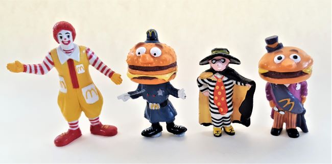 1985 Character Set Ronald, Officer Big Mac, Hamburglar, Mayor McCheese. |