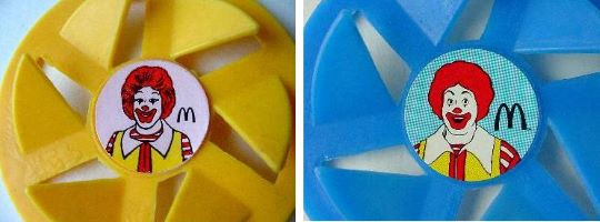 Blow Spin Tops Spin Wheels featuring the McD Characters 1992 -1994. |