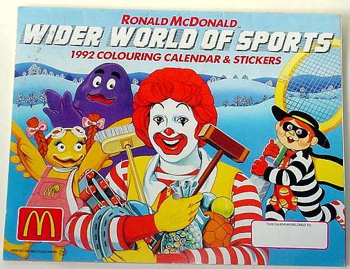 1992 Colouring Calendar & Stickers Ronald McDonald Wider World of Sports. |