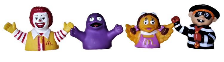 Thick Top Character Bubble Spinners Ronald, Birdie, Grimace, Hamburglar. |