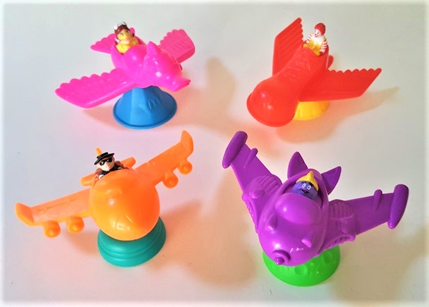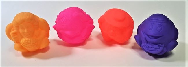 Mini Sports Frisbees Ronald-sprinting, Hamburglar-soccer, Birdie-basketball, Grimace-weights. |