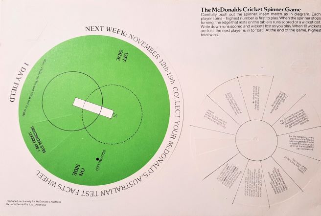 with questions on one side and answers on the other. The games were printed with the text: "Compiled and distributed exclusively by McDonald's Family Restaurants Australia Nov. 1979 and endorsed by Rod Marsh"
