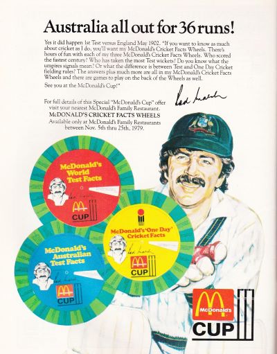 1n 1979 McDonald's® Australia sponsored the McDonald's Cup cricket series.