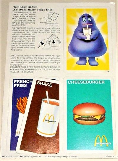 Chase The Shake Card Trick where Grimace always gets the shake. The packet includes instruction for the trick.