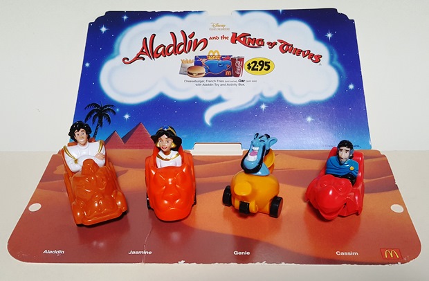 The Aladdin King of Thieves set of toys was released to promote the new VHS video in Australia. It included four hard platic toys measuring approimately 7cm.: