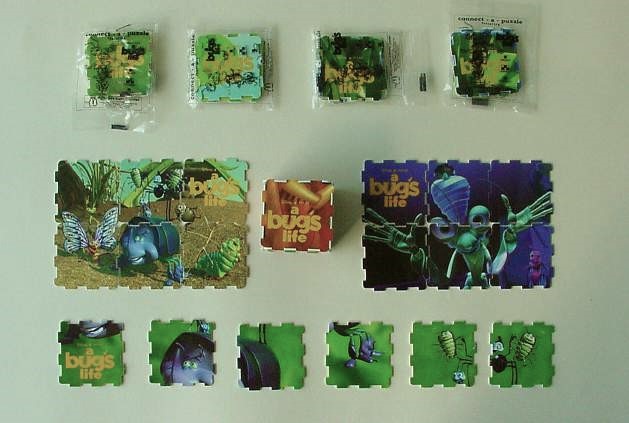Eight six-piece puzzles featuring characters from the movie. Each puzzle can be made into cube or a flat scene.